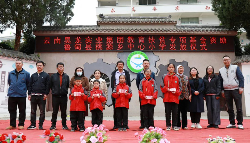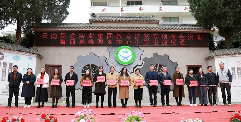 昊龙教育扶贫专项基金向桃源乡中心小学资助10万元,为桃源乡中心小学267名品学兼优和家庭困难的学生发放了奖学金和助学金,对39名教学成绩取得全乡前三名的优秀教师进行奖励。
